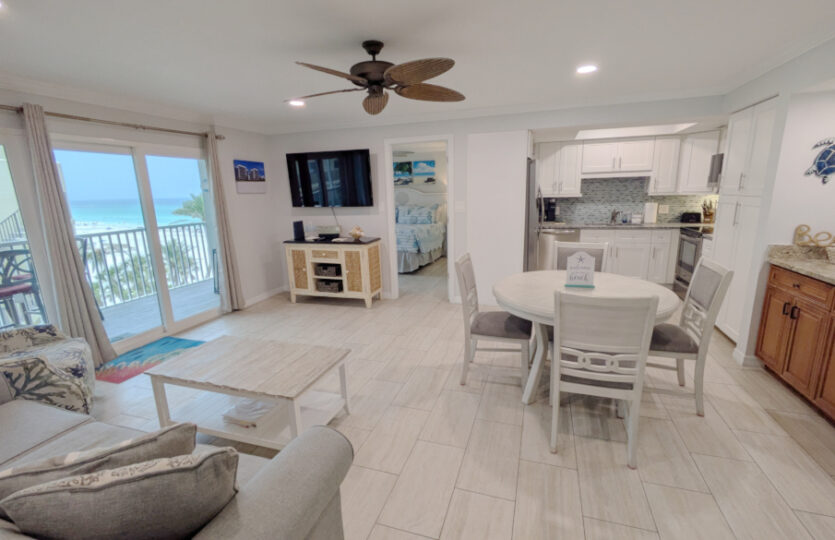 There are gorgeous Gulf views from the living room and both bedrooms. Lay in bed and open your eyes to the beautiful beach and waters of the Gulf of Mexico!