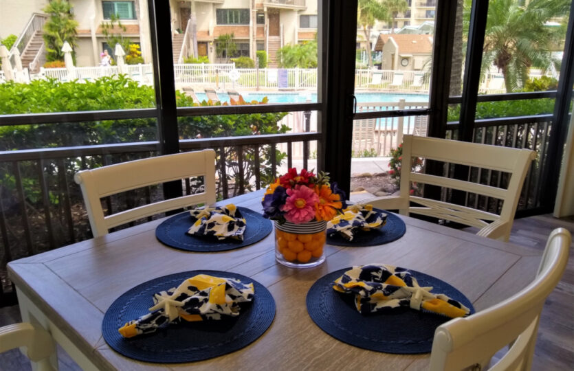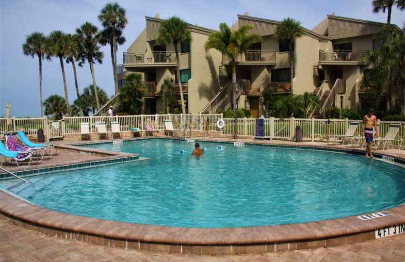 Included with your private beach access are complimentary umbrellas & beach chairs & beach concierge 7 Days A Week. There are two heated pools – one on the gulf side one on the bay side, both handicap accessible. Two tennis courts, gas grills in the picnic areas, and a Bayside Clubhouse with a computer, printer & Wi-Fi access. The fitness room includes two treadmills, an elliptical, a recumbent bike, all purpose machine and free-weights.