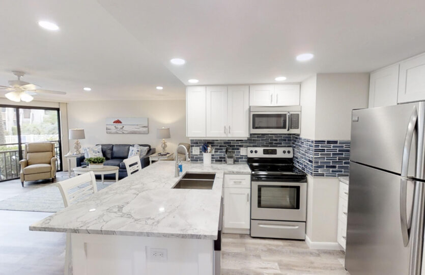 This Midnight Cove unit is ideally located right on the beach and walking to nearby restaurants. The pool is literally outside your door which is great if you have kids using the pool a lot. The kitchen appliances were all new. The location makes it a perfect unit.